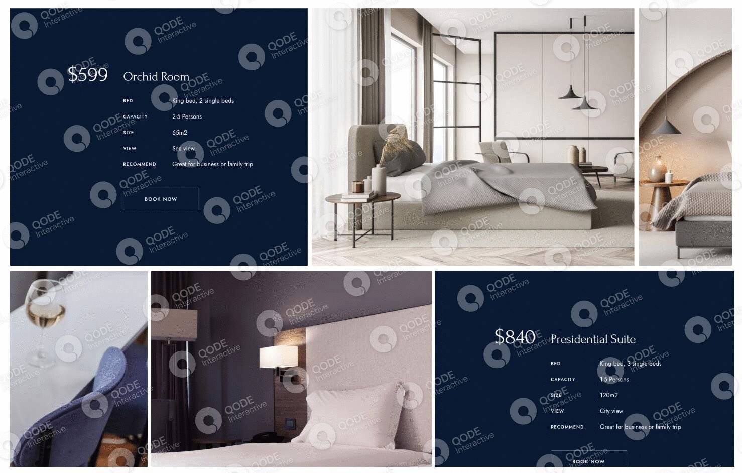 The theme features twelve fully-fledged and versatile website examples for all types of hotels & resorts.