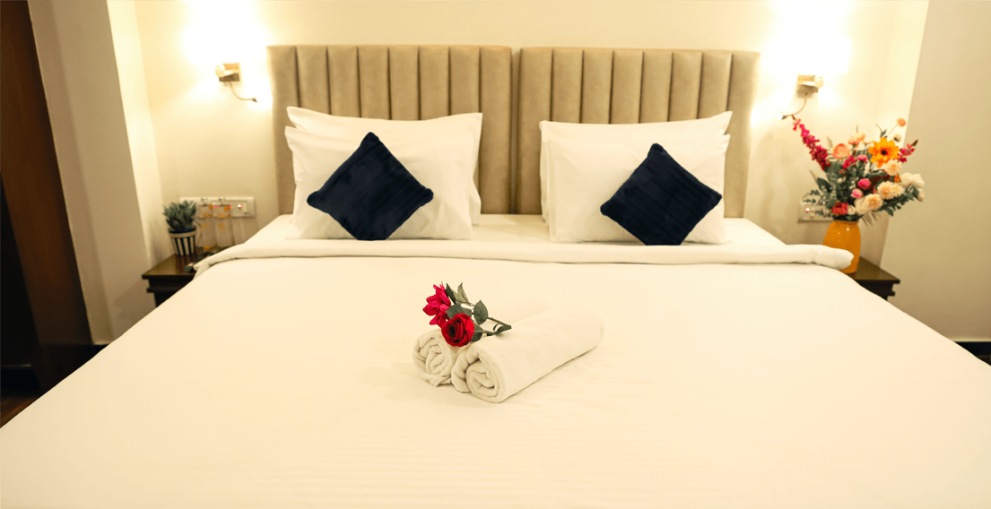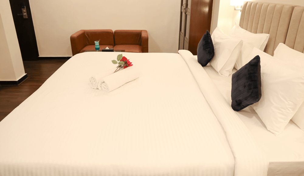 The Deluxe Room offers a touch of sophistication with its king-sized bed, contemporary earthy interiors, and elegant wooden flooring that create a warm and inviting ambiance. Designed for guests who appreciate comfort and style, the room features modern amenities including high-speed Wi-Fi, a flat-screen TV with satellite channels, laundry services, and a direct dial phone with voice messaging. A spacious work desk caters perfectly to business travelers, while contact-less mini bar facilities, a hair dryer, and an electronic safe add to the convenience and luxury of the stay. Thoughtfully crafted to combine modern functionality with timeless design, the Deluxe Room ensures a relaxed and memorable experience for every guest.